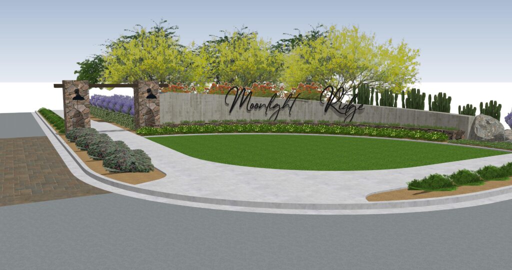 Paying homage to the original dairy farm owned and operated by Rick Anglin, agrarian forms and design elements have been incorporated into the community’s thematic design – but with a desert inspired twist! This includes incorporating desert/native plant palettes into more traditional agrarian tree groves, farmhouse aesthetics, and “front porch” parks.