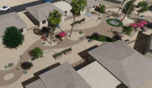 “The moment I found out that the 2022 project needed a landscape architect “visionary” to design a welcoming community space, I jumped at the chance. I have experienced the hardships of homelessness. I’ve felt, firsthand, what it’s like to have nothing. When the opportunity presented, it was a way for me to give back,” explains Mark. “While assessing the area that we had to work with, I thought about the kids, their families, and the bonds and friendships that could be formed if we were to create a shared space that felt inviting and comforting…like home.”