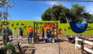 For months leading up to Community Project Action Day, which was held on Saturday, November 5th, volunteers from the A/E/C industry teamed up to imagine a space within the community that would inspire residents to come together, enjoy the company of one another, celebrate holidays and other special occasions, and provide a safe play area for children. It also contains a large mural and a community garden for residents to spend time in and to grow produce for the families living in the community. As the muralist for the Valley Partnership Community Project since 2019, I’ve been gifted with the opportunity to watch the awe-inspiring collaboration of teams connecting to transform spaces that strengthen communities. But this year provided an even greater reward. I was able to collaborate directly with the Landscape Architecture team, led by RVi’s Mark Bailor, who, upon learning about the project, was instantly “all in.”