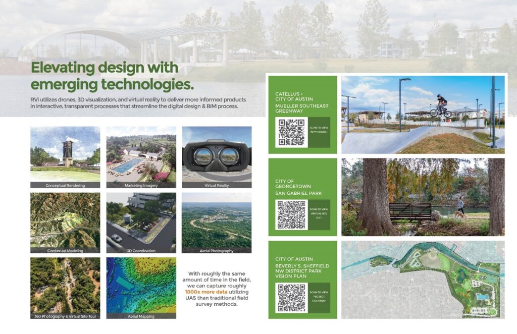 Some of my favorite storytelling moments are when I get to travel to some of our various projects, and having the ability to capture the hard work that we have put into these sites in the form of images and videos with the use of handheld cameras and drones. I have always had a love for photography and videography, so being able to use those skills to help tell RVi’s story is like a dream come true for me! Through these project visits, I have been able to not only apply the skills that I have practiced and mastered with my cameras and drones, but I get to learn about and experience the further impact that that the graphic captures have on the firm – being able to communicate our story in a way that is meaningful to me, to the firm, and to our clients and colleagues. Here are a few of the emerging technologies I’ve used to develop and enhance RVi’s storytelling and design work.