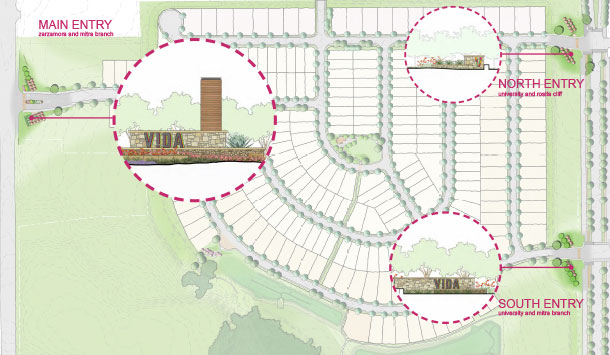 Inspired by the lively culture of San Antonio, RVi’s design not only brings people together but also fosters physical and social energy. Vibrant colors and modern lines are on full display, integrating a variety of local materials and plant palettes. At full build-out the project core will feature a chain of parks and trails that connect to the Texas A&M-San Antonio campus as well as the greater San Antonio Greenway Trails system. Pocket parks will also provide a variety of active and passive experiences from open lawns and nature-inspired playscapes, to food truck picnic parks, fire pits, and hammock gardens. With plenty of sidewalks, trails, greenways, and parks connecting the community with the University area, VIDA was planned with walkers, cyclists, and nature enthusiasts in mind.