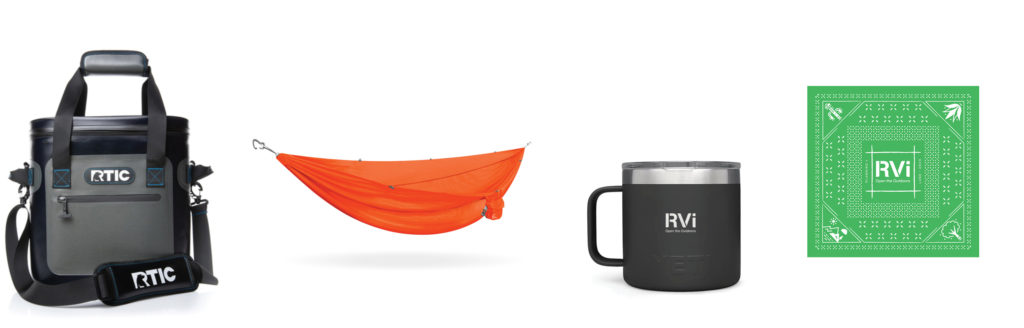 We’ll be following your adventures all day long (in between our own outdoor activities, of course!). Each person who makes a post will be entered for a chance to win our “Outdoor Adventure Starter Kit”, which includes an RTIC Soft Pack Cooler, Kammock Roo Double Hammock, Yeti Rambler 14 oz coffee mug, and limited edition RVi bandana!