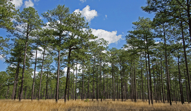 Longleaf pine’s historic range extended throughout the southeastern United States in coastal plains and sandy uplands where it formed extensive stands.  These old growth longleaf pine stands were the preferred habitat of the Red-Cockaded woodpecker, which is now endangered due to habitat loss.