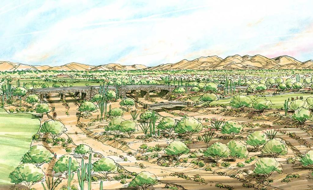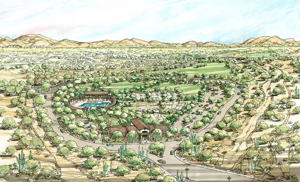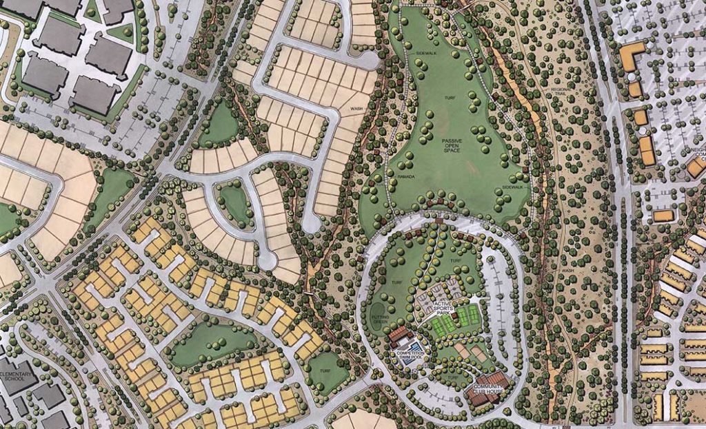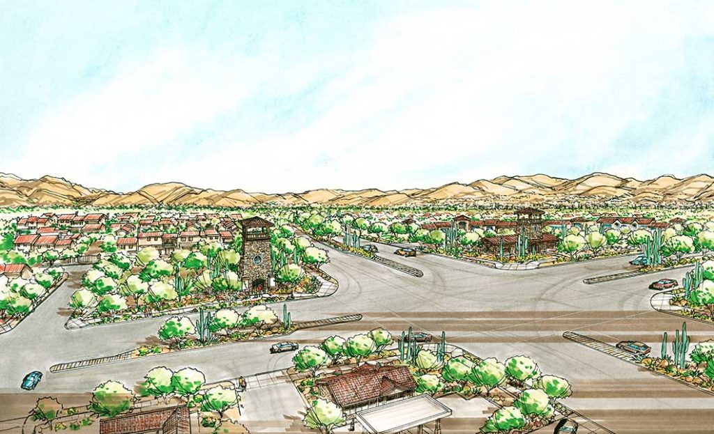 The team’s role in the project included General Plan Amendment processing, master planning and rezoning services, site planning, lotting design, landscape, and entry monument design.