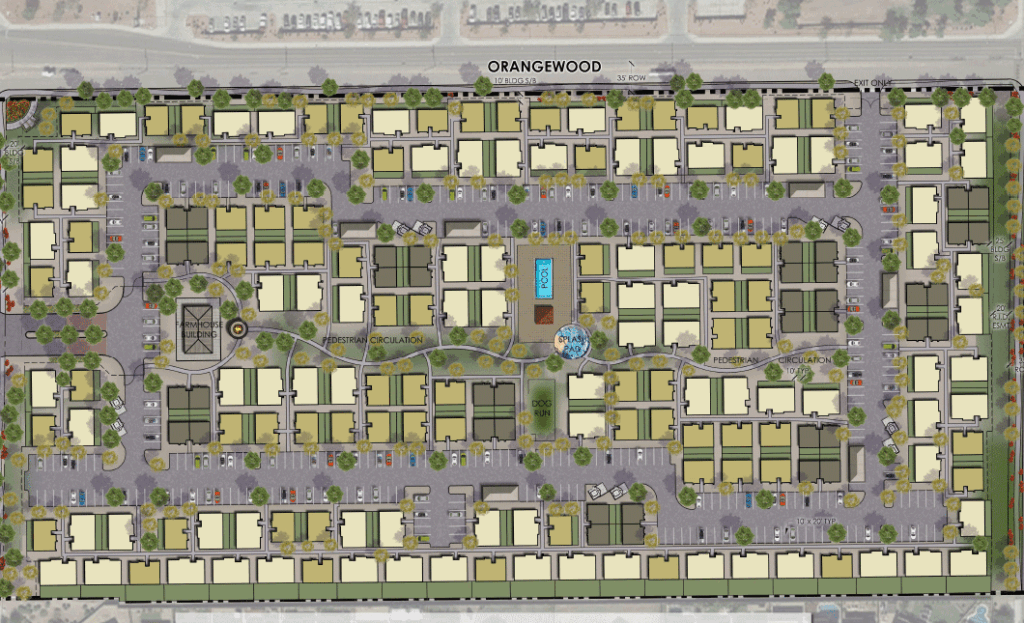Located within convenient walking distance of Arizona Cardinals Stadium and Glendale’s Westgate Center, the Bungalows Stadium Site is a single-story, luxury rental community which includes a mix of one-bedroom duplexes, and two- and three-bedroom detached units. RVi prepared the site plan and a community amenity package that includes a “Farmhouse” community center and swimming pool, fire pits, picnic areas, a dog park, and turf play areas.