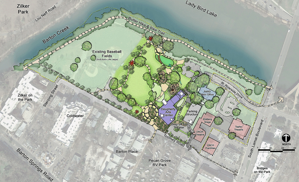 Working with the City of Austin and the community through public engagement meetings, RVi proposed a conceptual plan for the development of a cultural arts park, which will serve as home to the new Dougherty Arts Center (DAC). The existing DAC facility has been the “Heart of the Arts” in Austin since 1978, providing performance space, art exhibitions, and studio arts programs for youth and adults.