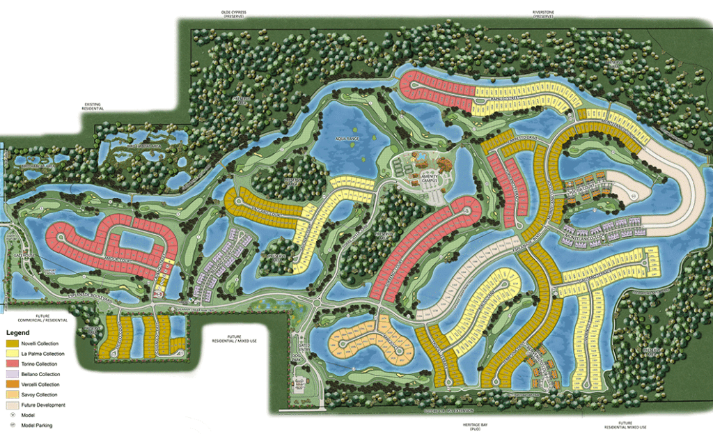 Our team provided planning and design services for this landmark active-lifestyle master planned community. The Tuscan-themed design includes a comprehensive system of trails, incorporating more than 11 miles of trails made up of a five+ mile loop trail, fitness trails and wilderness trails. The program also incorporates sidewalks and linear parks into a network around the centralized resort-style amenity center. The amenity campus offers a blend of uses, including a culinary center, a learning center, a wellness facility with resort pool, poolside Bahama bar, golf and tennis pro shop, golf course, golf practice facility and aqua range, sports courts, dog park and multi-use event lawn. Careful consideration was taken during the preliminary golf routing, enabling the course to have a seamless flow through the community.