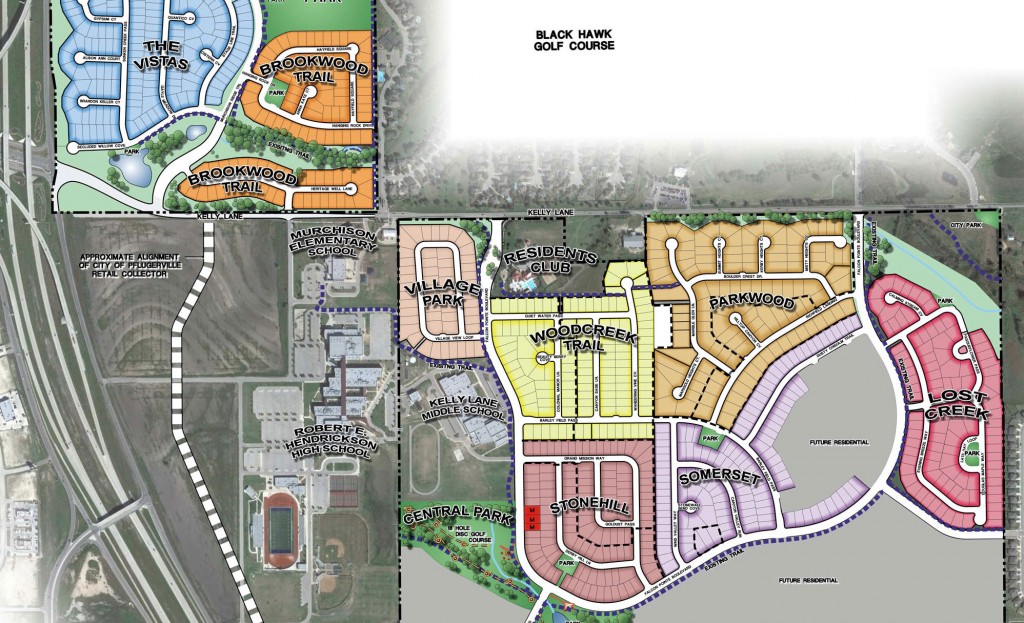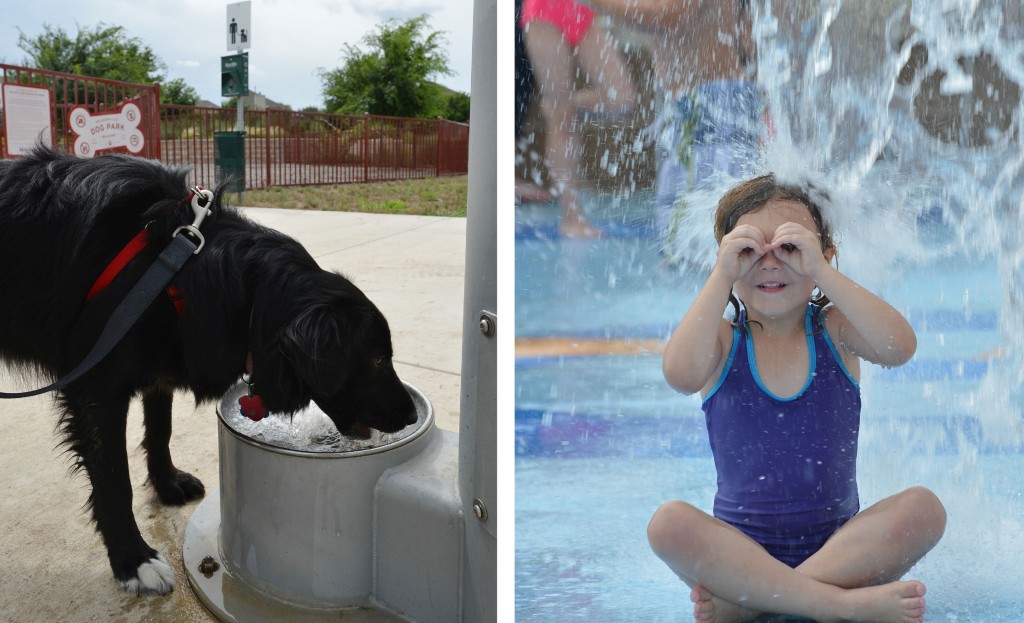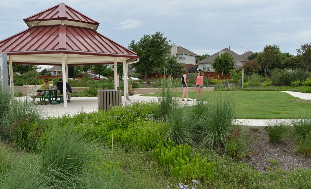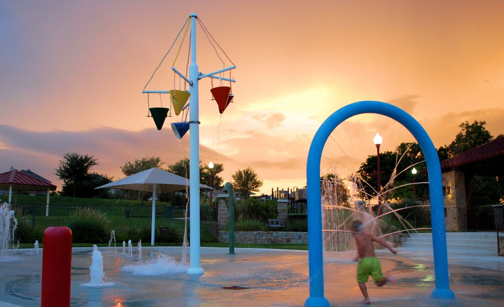 Additionally, there are 31 acres of public park space at Falcon Pointe. As they are developed, these parks become part of the City of Pflugerville’s parks system. Two such parks have been developed to-date: Falcon Pointe Gardens and Falcon Pointe Splash Park. The Gardens park features demonstration gardens, a community orchard, interpretive signage, purple martin houses, and a dog park. The Splash Park features a picnic pavilion, umbrellas for shade, and seat walls that place parents nearby the watery fun.