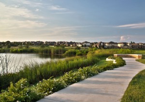 Additionally, there are 31 acres of public park space at Falcon Pointe. As they are developed, these parks become part of the City of Pflugerville’s parks system. Two such parks have been developed to-date: Falcon Pointe Gardens and Falcon Pointe Splash Park. The Gardens park features demonstration gardens, a community orchard, interpretive signage, purple martin houses, and a dog park. The Splash Park features a picnic pavilion, umbrellas for shade, and seat walls that place parents nearby the watery fun.