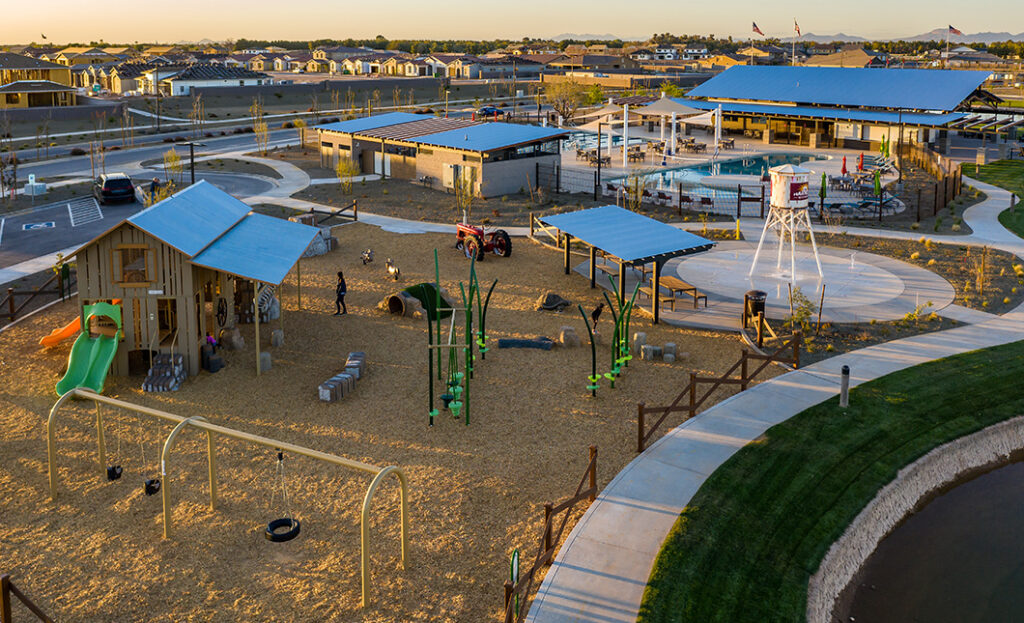 Harvest Queen Creek is a new residential community located in the up-and-coming town of Queen Creek. Designed with a nod toward Queen Creek’s pastoral heritage, the community’s theme will appeal to the growing interest in agriculture and urban farming. The community will feature a central Grange Park that will offer traditional amenities including a pool, pavilion, event lawn, playground, and active play lawn. Other pocket parks will offer themed amenities such as raised bed garden plots, large communal farm tables, and an interactive solstice park.