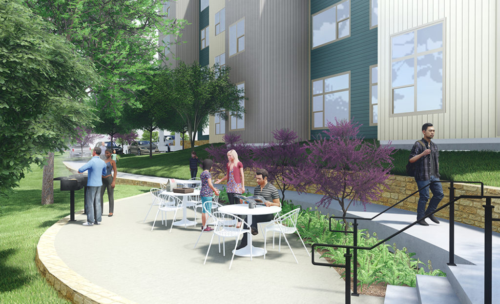 RVi provided landscape architecture and professional 3D visualization services for Laurel Creek, a new affordable housing complex located on North Lamar in Austin, Texas. The 5-acre site, like many other available properties in Austin, possessed difficult grading challenges that were creating larger issues in terms of access and affordability. Working closely with the project team and the client, RVi built a 3D terrain model for the entire site, overlaying the design plans onto the site’s terrain. This allowed the team to more accurately see how the project would fit into its final context and proved instrumental in overcoming the topographical issues.
