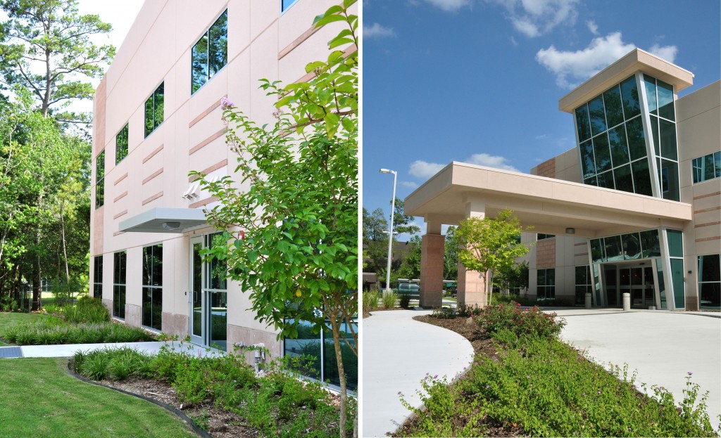 From the outset, design for this contemporary 30,000 sf medical office building embraced the integration of sustainable design concepts, construction materials, and technologies. As a result, PineMed became the first medical building in The Woodlands to be LEED certified by the USGBC. In addition to preserving a diverse 600’ buffer of existing pines and wildlife habitat along surrounding drives, the landscape design incorporates a highly-efficient drip irrigation system, xeriscape and native plant materials, and locally-sourced construction materials.