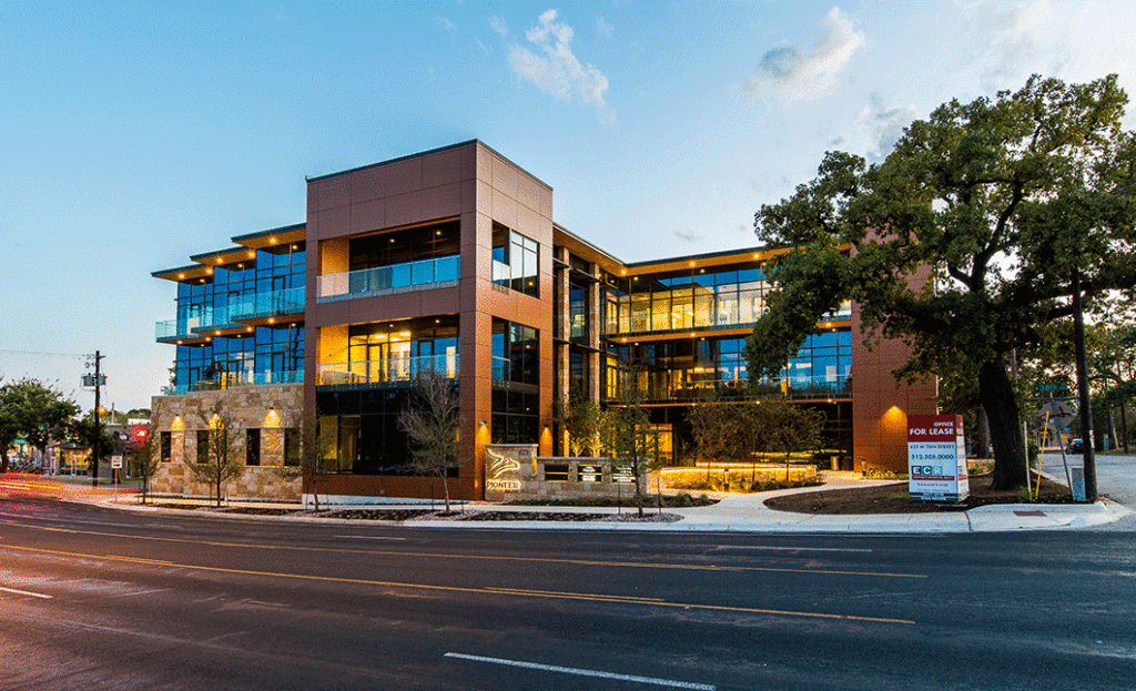 RVi is providing landscape architecture services for Pioneer Bank’s new bank building in the Austin-University area. Site design includes an grand entry plaza at 38th Street which provides a unique front door to the building and serves as a shaded gathering space for employee use and special events. An interior courtyard provides street-level access as well as covered access from the adjacent 4-level parking structure to the bank. Within the courtyard, an intricate hardscape design extends into the entry drive to evoke a more pedestrian oriented space, even where vehicles are present.