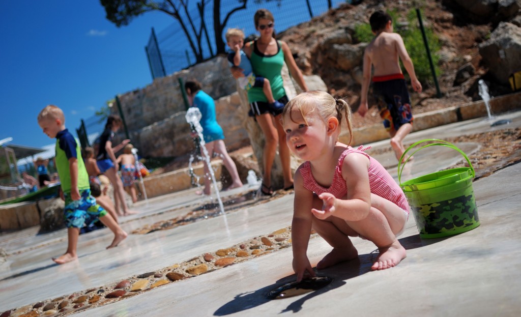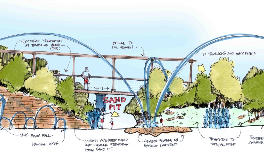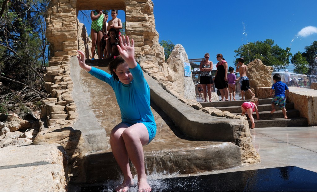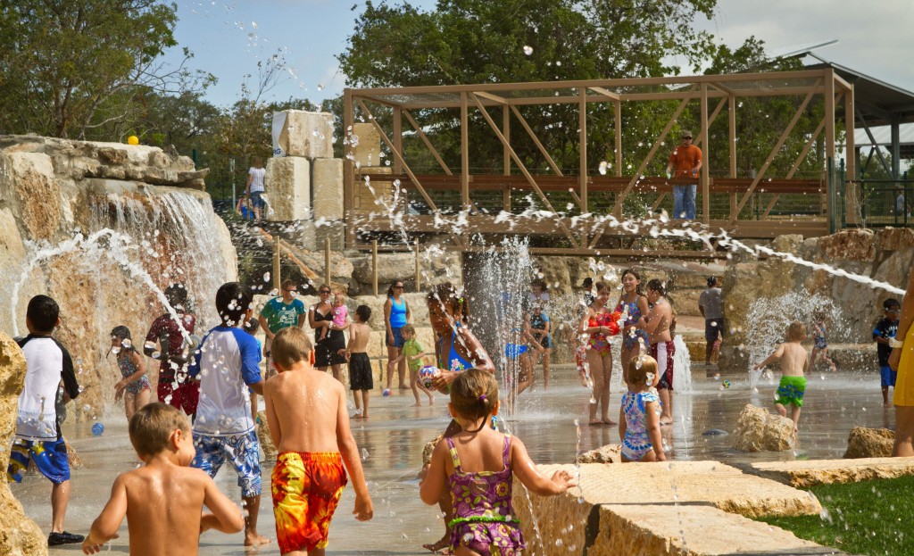 An abandoned quarry plays host to a magical world of waterfalls, geysers and a water slide in the Southwest Regional Park Splash Pad. Located in an existing park, Williamson County’s latest splash pad answers a community call for relief from overcrowded area splash pads. The new addition brings water to life with a Hill Country theme of Texas springs and swimming holes. Large pavilions and smaller “birthday” pavilions sprinkle the site with opportunities to cool off from the hot summer sun and new gathering spaces for the park’s many visitors. The 8,000 s.f. interactive splash park also includes a slide, sandpits, restrooms and a concession stand providing additional amenities to guests.