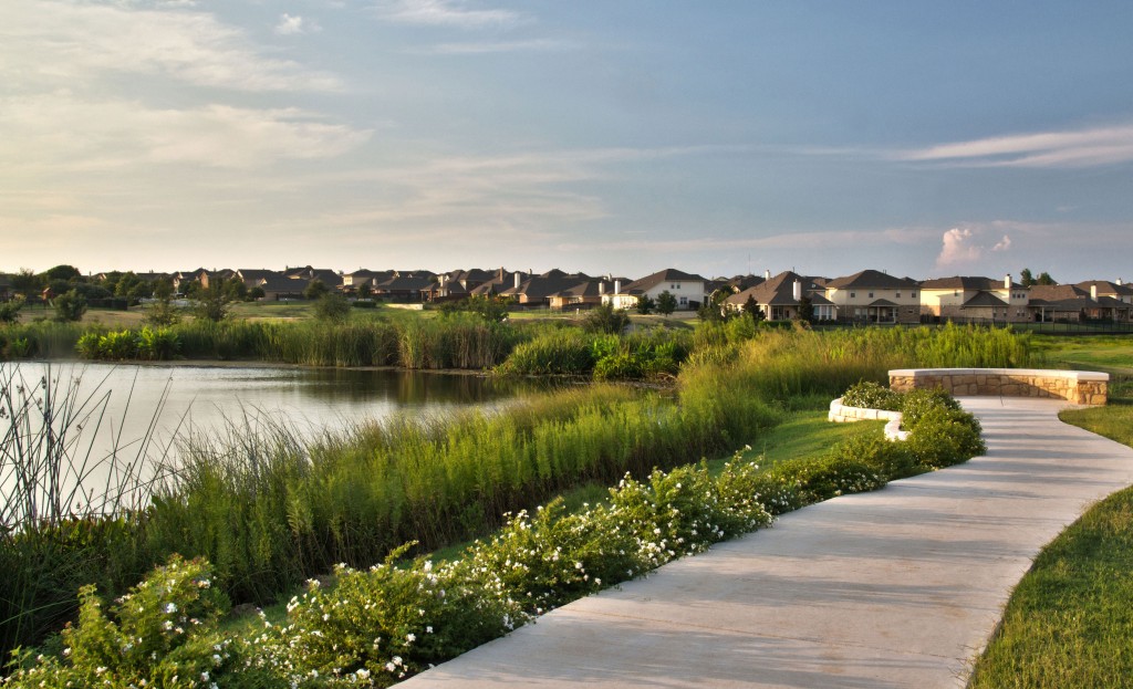 Teravista is a large master planned community north of Austin that extends into parts of Round Rock and Georgetown. RVi was selected as the planner and landscape architect about midway through the community’s build out. With the newer sections of Teravista, Developer Newland Communities has shifted their design philosophy to include more local and updated materials and more native and drought tolerant plantings. RVi’s role has included updating the master plan, lotting plans, and design guidelines, as well as designing new neighborhood sections, pocket parks, streetscapes, two model home parks, and the major entry at Westinghouse Road. Additionally, RVi designed the new Wildflower Park Resident’s Club in conjunction with Clayton & Little Architects. The facility is heavily influenced by sustainable design principles, including rainwater harvesting for irrigation, a rain garden to treat stormwater runoff, and extensive native plantings. The Recreation Center includes an impressive swimming complex with a lap pool, splash pool, and drop shot sports pool, as well as a fitness center, gathering room and pavilion, amenity pond, and amphitheater.