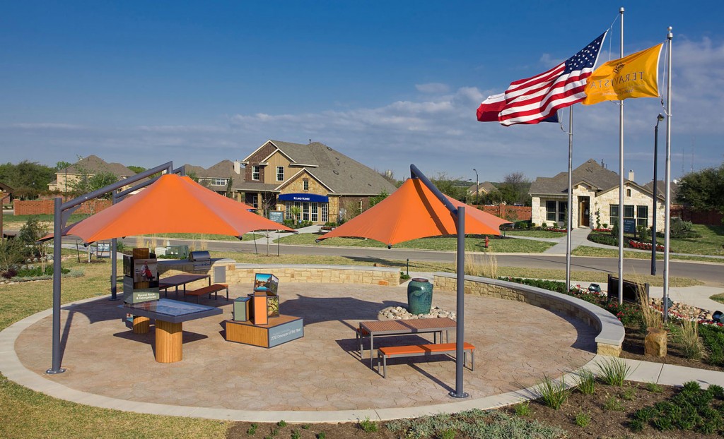 Teravista is a large master planned community north of Austin that extends into parts of Round Rock and Georgetown. RVi was selected as the planner and landscape architect about midway through the community’s build out. With the newer sections of Teravista, Developer Newland Communities has shifted their design philosophy to include more local and updated materials and more native and drought tolerant plantings. RVi’s role has included updating the master plan, lotting plans, and design guidelines, as well as designing new neighborhood sections, pocket parks, streetscapes, two model home parks, and the major entry at Westinghouse Road. Additionally, RVi designed the new Wildflower Park Resident’s Club in conjunction with Clayton & Little Architects. The facility is heavily influenced by sustainable design principles, including rainwater harvesting for irrigation, a rain garden to treat stormwater runoff, and extensive native plantings. The Recreation Center includes an impressive swimming complex with a lap pool, splash pool, and drop shot sports pool, as well as a fitness center, gathering room and pavilion, amenity pond, and amphitheater.