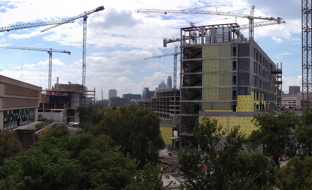 RVi is working as the local landscape architect under prime firm Sasaki Associates on UT Austin’s new Medical District. The site is bounded by Interstate 35, Trinity Street, Martin Luther King Jr. Boulevard, and 15th Street in Downtown Austin. The project is being delivered on an extremely aggressive schedule, with a goal of admitting the first class of medical students in 2016. RVi’s role has included consulting and guidance on the ecological restoration of Waller Creek and the surrounding native landscape, tree relocation, temporary and permanent irrigation, as well as innovative water harvesting strategies. The project is targeting several sustainability initiatives, including LEED, Sustainable Sites, and SECO.