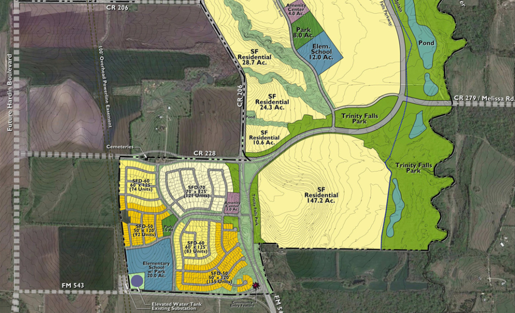 RVi has been working with Castle Hill Partners on the community since early 2012. Phase I is currently underway, including 142 acres of single family residential, a 3-acre recreation center, and the first phase of Trinity Falls Park.