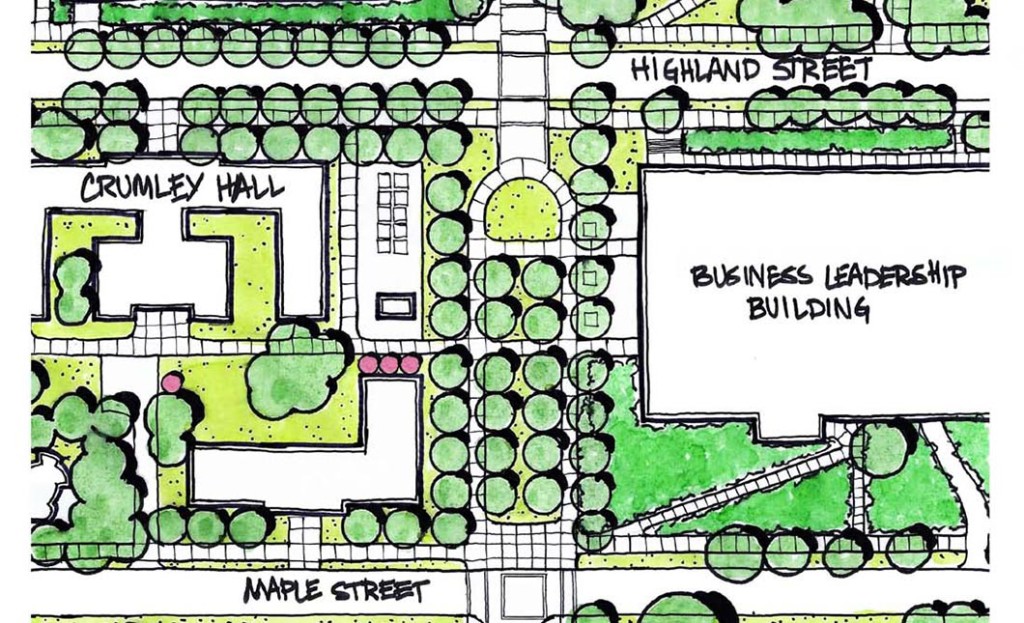 Our firm worked as a sub-consultant to prime firm Ayers Saint Gross. We were charged with preparing landscape design guidelines including the campus landscape structure, basic principles of planting design, and specific area guidelines. In addition, we assisted ASG and the design team in defining campus edges, open space, trees, pedestrian circulation, and vehicular circulation. Dynamic master plan schematics and conceptual design studies, along with concepts for future needs and alternatives for campus development, were prepared and presented to the University. Detailed narratives were also prepared for the final master plan document.