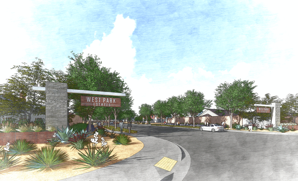 West Park Estates is an urban infill residential community located in growing agritainment-centric Queen Creek. Desert modern in style, this community is especially enticing due to its direct connection to a future Maricopa County regional park. West Park Estates features pocket parks throughout with turf, playgrounds, and shade structures, as well as tree-lined streets and a trail system that will connect to the regional park. RVi was responsible for guiding the design of the entry signage and marketing trail, planting plans, streetscape, and trail improvements.