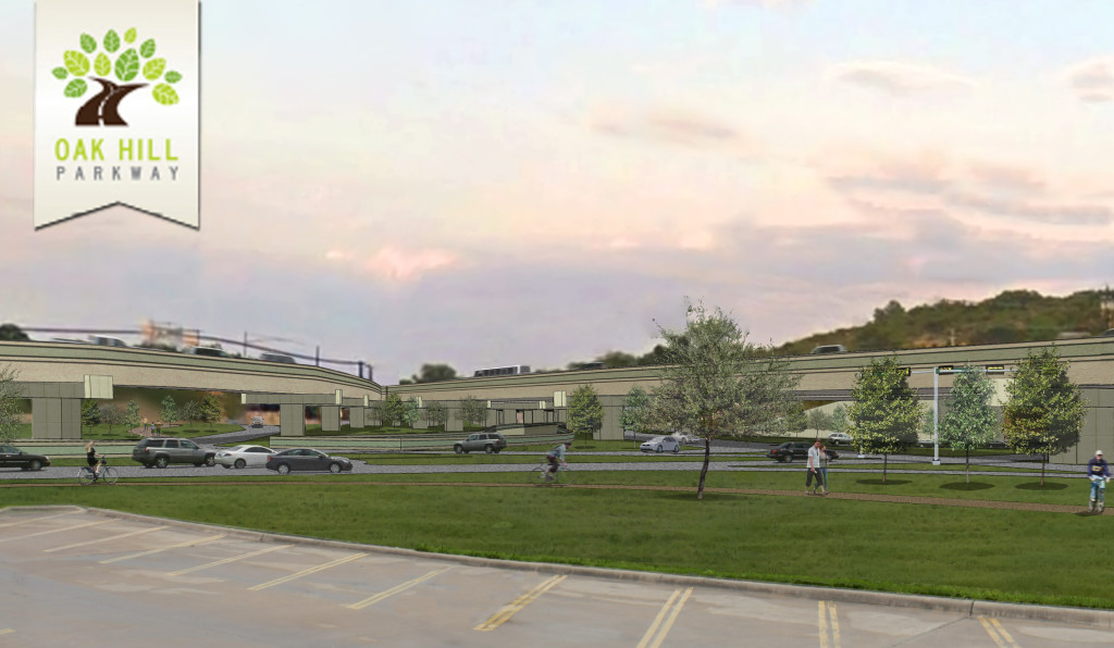 Recently, RVi was able to help the Oak Hill (also known as “The Y at Oak Hill”) Parkway team alleviate concerns about the height of a proposed flyover. In order to show the scale of the flyover, RVi worked with the project’s transportation engineers, Rodriguez Transportation Group, to create a photorealistic perspective rendering showing the proposed roadway structure with the iconic Oak Hill bluff in the background. Rather than showing the final aesthetic package, the purpose of this rendering was to provide a sense of scale and show how the structure of the proposed alignment fit into its actual surroundings. To ensure an accurate representation, a model of the proposed roadway design was created along with notable features in the existing surrounding environment. After detail was added to the model and incorporated with site images, drafts of the rendering were then circulated throughout the project team. Because the rendering was created in-house, RVi was able to quickly and efficiently incorporate team comments. Once the rendering was approved by the project team, the final product was used to communicate to the public in a variety of ways such as the website, newsletter, and presentation boards at public workshops.