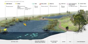 The incorporation of designed habitat features that mirror the natural environment has played an important role in the health and well-being of the urban community. As a team, we have sought to convey the importance of such urban habitats to the public through art and education, including signage throughout the Southwest Greenway and public art commissions such as a massive pollen grain and a giant steel spider.