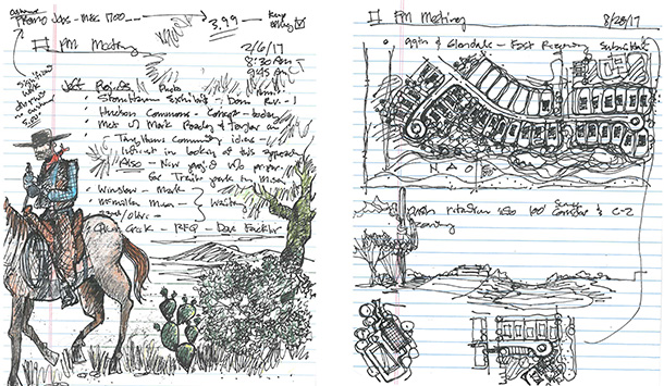 Of course, Jeff’s notebook is also filled with many sketches that aren’t necessarily project related. From cowboys to caricatures, he captures them all. Check out a sampling of Jeff’s sketches below.
